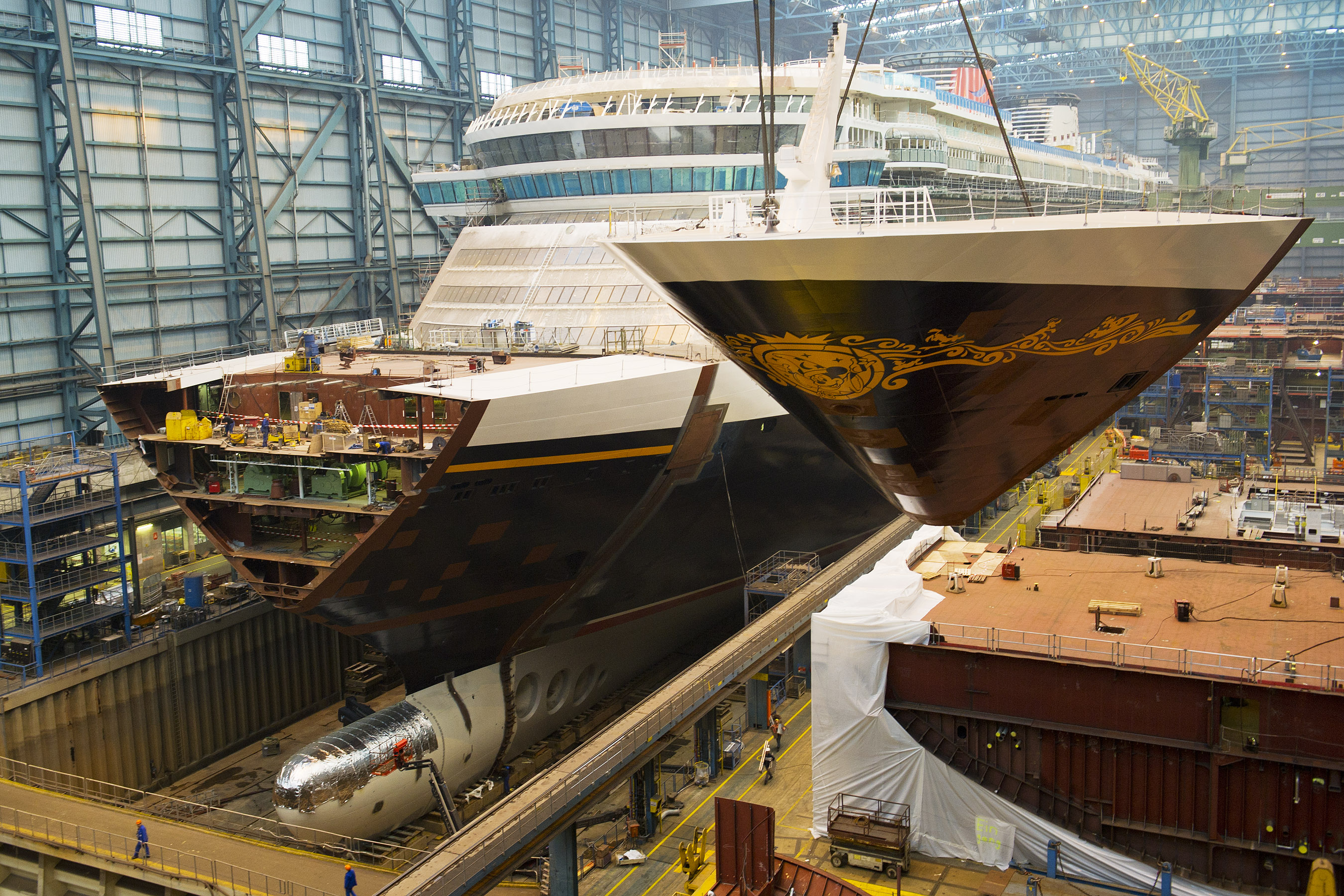 The final building block was positioned on Disney Fantasy last weekend at the Meyer Werft shipyard in Papenburg, Germany.