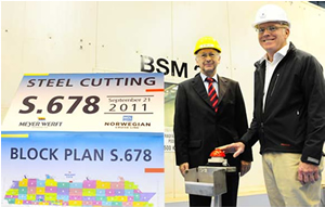 “Today’s steel cutting marks the start of construction for Norwegian Breakaway, our next generation Freestyle Cruising ship, that will captivate and amaze our guests,” said Kevin Sheehan, CEO Norwegian Cruise Line.