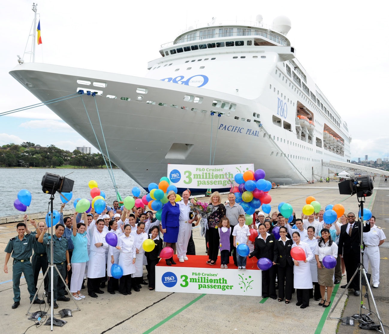 Pacific Pearl welcomed P&O Cruises’ three millionth passenger yesterday when Sydney mother of two Deanna Catlett embarked on a South Pacific voyage with her family.