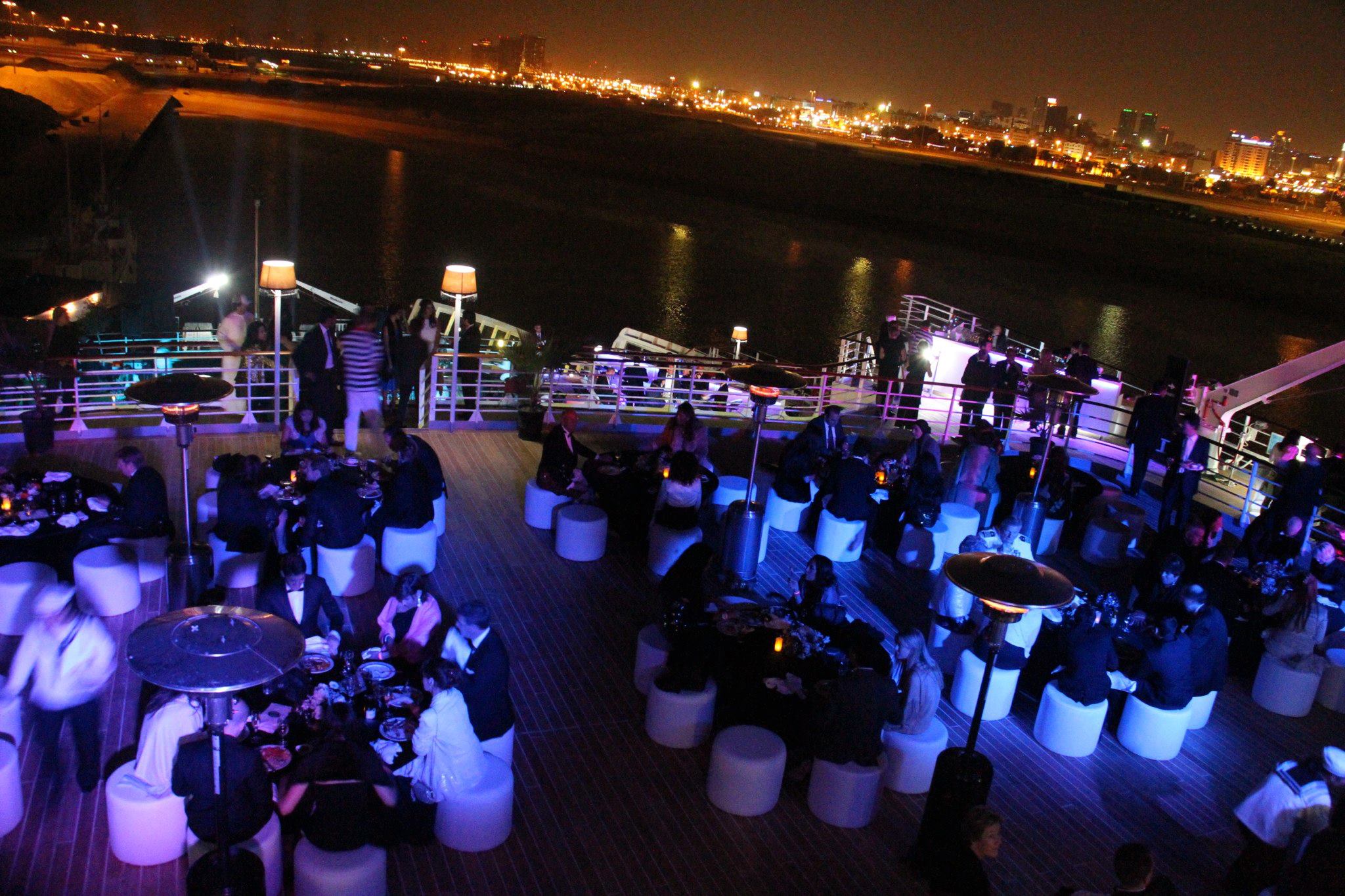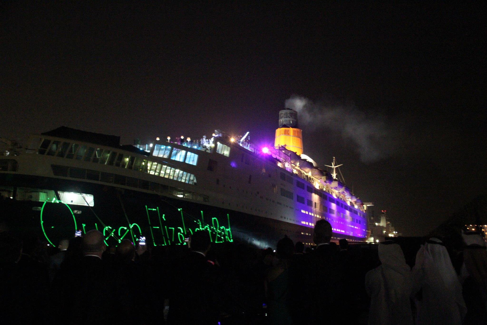 Almost 800 guests boarded the illustrious QE2 on New Year’s Eve for the ship’s first major event since leaving her home of Southampton for Port Rashid, Dubai three years ago.