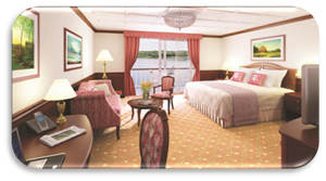 All staterooms onboard come complete with a private balcony and will feature large sliding glass doors, satellite television, DVD player, Wi-Fi,