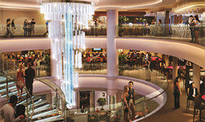 A variety of retail outlets, the photo gallery and ‘Humidor Cigar Lounge’ will be located on deck 8, 678 Ocean Place which will overlook an LED chandelier with light changing effects that will act as the centerpiece above a glass staircase connecting three decks.