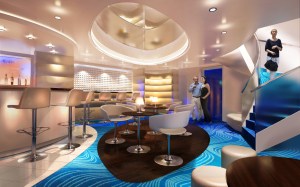 This unique at-sea address will also feature a two-storey video wall and a Café and Bar at ‘The Atrium’ on deck 6 which will also house the shore excursion desk, internet café, art gallery, two meeting rooms, card room and a library.