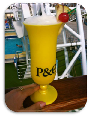 My souvenir P&O hurricane glass in hand I enjoyed a Pina Colada whilst listening to the smooth sounds of DJ Cowboy before checking in on my first time cruiser.