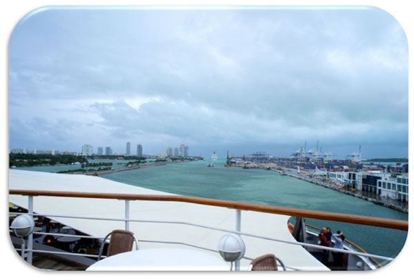 Embarking the vessel formerly known as Pride of Aloha in stormy Miami, I am impressed with the streamlined operation at the port and am escorted swiftly aboard the ship.
