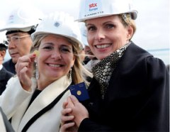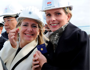 MSC Cruises head of onboard marketing Daniela Picco acted as godmother during the ceremony presenting the coins with STX France’s Jeannette Le Queau who has been involved with MSC since the first new-build orders were placed at Saint-Nazaire ten nearly 10 years ago.