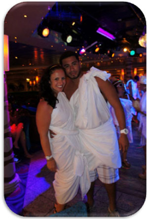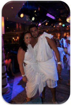 Sheets are provided and the cruise staff quickly transform us into Greek gods and goddesses for the festivities.