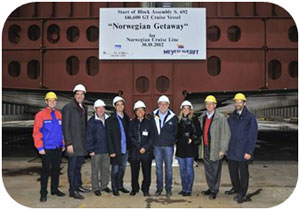 Norwegian Cruise Line CEO, Kevin Sheehan and members of Norwegian’s Board of Directors gathered at the Meyer Werft shipyard in Papenburg, Germany forNorwegian Getaway’s official Keel laying ceremony on 30 October.
