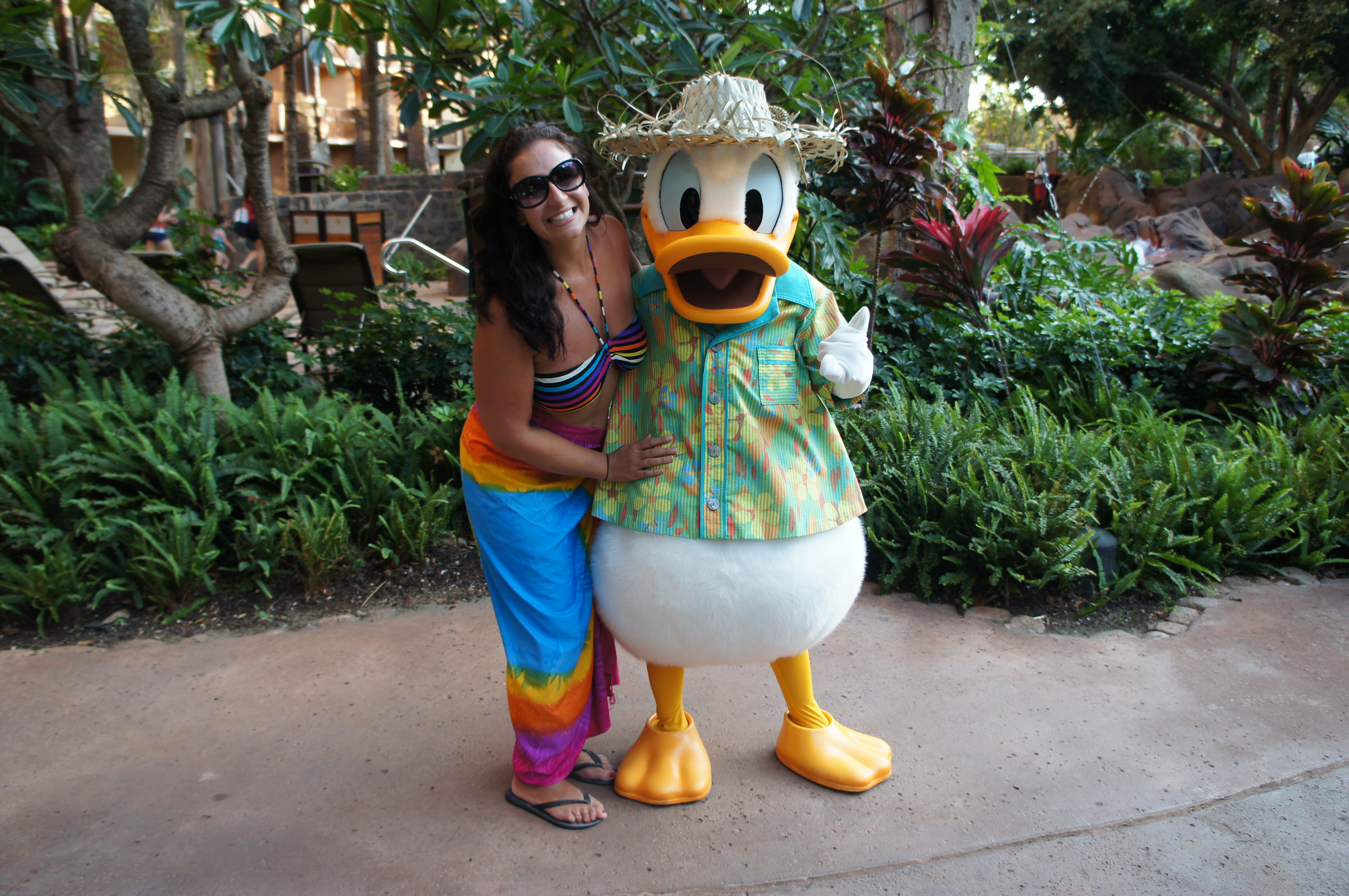 Spotting an array of Disney characters in the distance, I take the opportunity to cuddle Donald Duck and nab a photo before relaxing on a sun lounge on the beach ahead of the Aulani Starlit Hui hosted by ‘Uncle’.