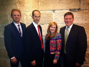 Tessa Anderson (pictured here second from right with Adam Armstrong, Adam Goldstein and Gavin Smith) is looking forward to experiencing Allure of the Seas when she visits the Miami office next month. Photo Credit: Natalie Aroyan